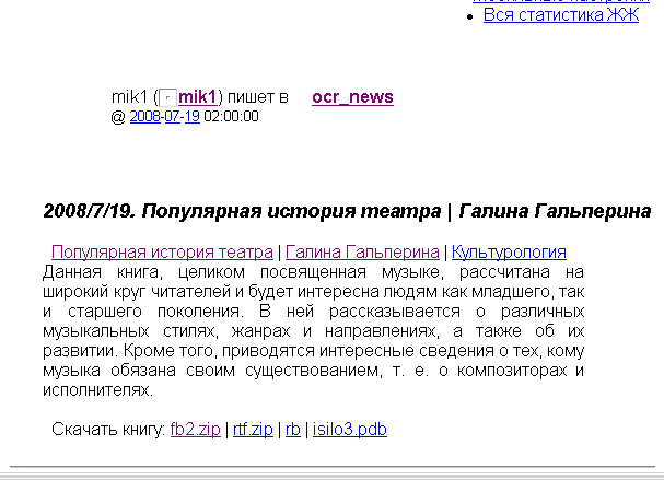 2. Автор записи в ЖЖ перепутал две книги и двух авторов: Горбачева "Популярная история музыки" и Гальперина "Популярная история театра", вернее, аннотацию от одной приставил к другой.